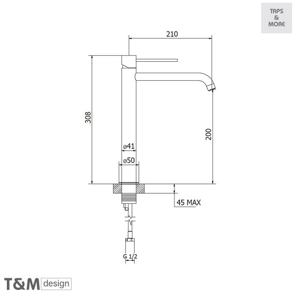 T&M DESIGN Single lever high-neck washbasin mixer without waste – VOGUE