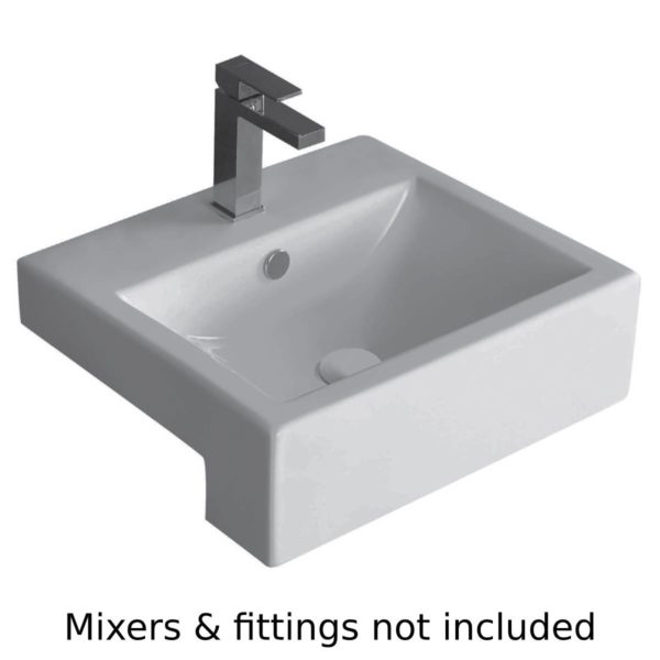 T&M DESIGN Semi-recessed washbasin with taphole, with overflow hole Size : 520 x 500 x 165 mm – Cliff