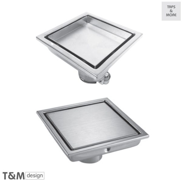 T&M DESIGN Square Floor Drain, reversible & tileable, compatible with 50 mm drain pipe Size : 150 x 150 mm – Publik