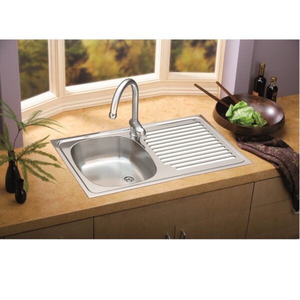 PRACTIC Inset – kitchen sink 1 bowl 1 drainer, with 3 ½” basket strainer and waste & overflow fittingsSize : 1000 x 520 mm – Atenea