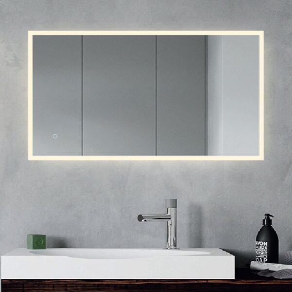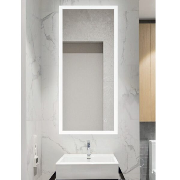 DUBIEL VITRUM Vanity Mirror with LED illumination, IP 55 frosted strip around the perimeter, with Illuminated touch ON/OFF sensor, 4 mm mirror thickness, vertical/horizontal fixing including mounting accessories-Focus