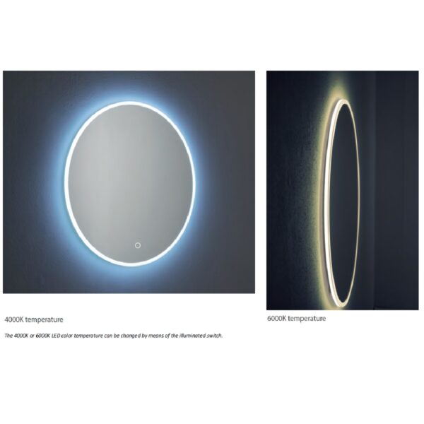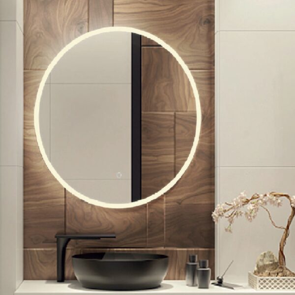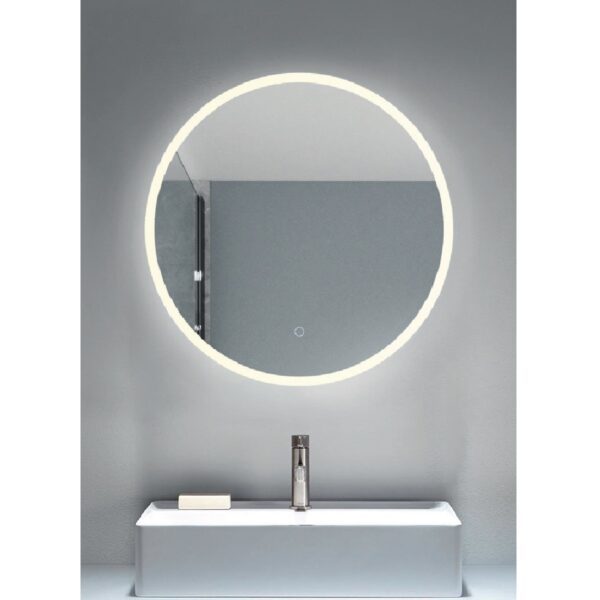 DUBIEL VITRUM Vanity LED mirror – 5 mm mirror thickness – One touch sensor intergrated ON/OFF, – Temperature color 4000K – including mounting accessories – CE, RoHS, IP54 – Input : 230 V AC 50Hz Size : Ø 800 mm – Athen Round