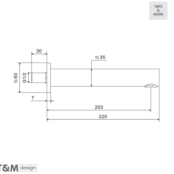T&M DESIGN ROUND Bath Spout Size : 204.5 mm – Universal