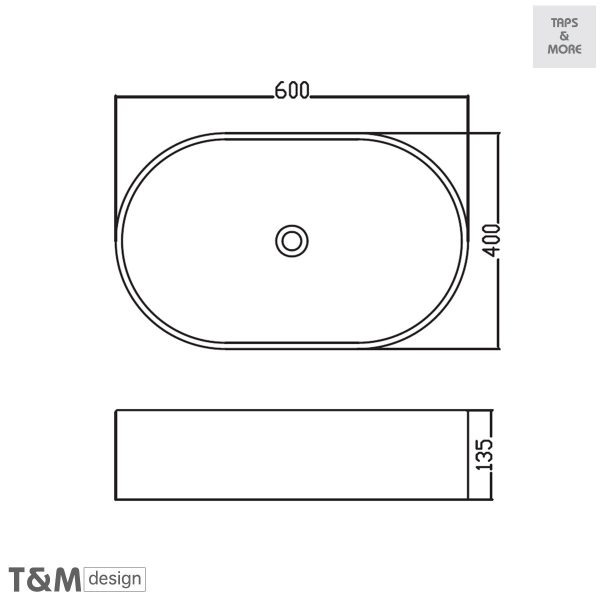 T&M DESIGN Lay-on washbasin without overflow hole Size : 600 x 400 x 135 mm – Space