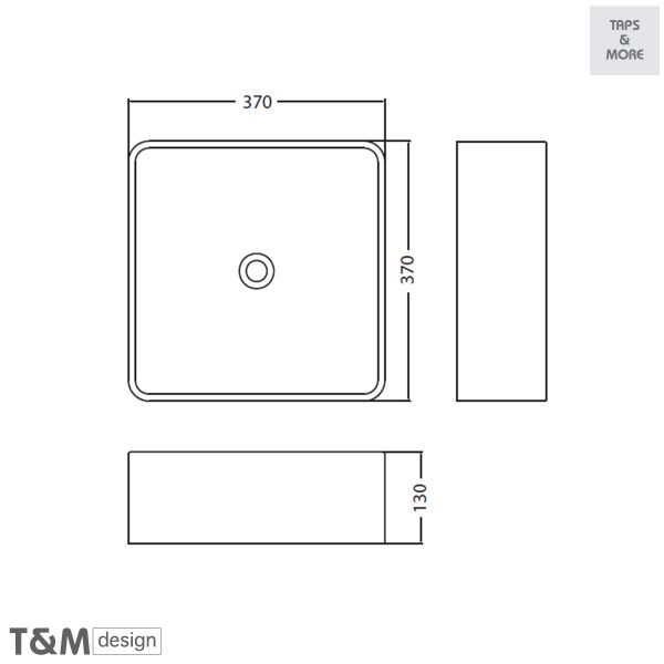 T&M DESIGN Lay-on washbasin without overflow hole Size : 370 x 370 x 130 mm – Linea