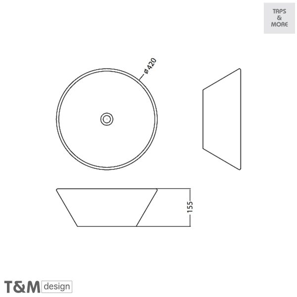 T&M DESIGN Lay-on washbasin without overflow hole Size : 420 x 420 x 155 mm – Cone