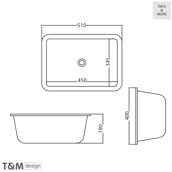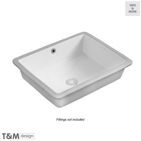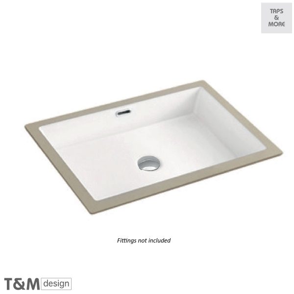T&M DESIGN Undercounter washbasin with overflow hole Size: 515 x 385 x 200 mm outside 455 x 325 mm inside – Recta