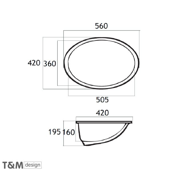 T&M DESIGN Undercounter washbasin with overflow hole Size : 560 x 425 x 190 mm – Vogue