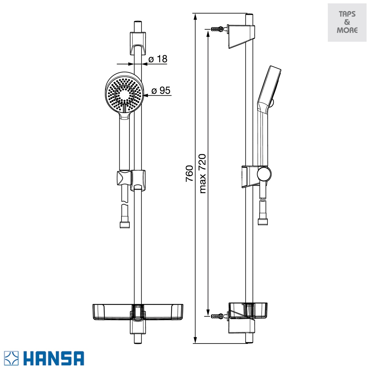 HomeShower collectionShower Rail set HANSA 3-Speed Shower Rail set with Soap Dish consisting of : shower rail, wall bar 720 mm, HANSABASICJET 3 hand shower, shower hose 1750 mm – BASICJET