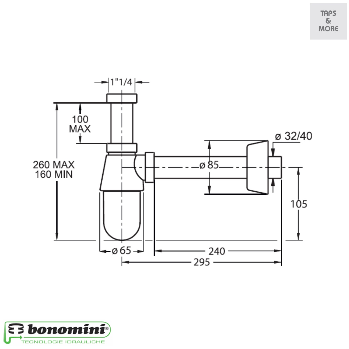 BONOMINI Bottle trap for washbasin with cleanable cartridge, with ABS chrome plated nut – SIZE: 1 1/4 (32 x 250 mm) – ROYAL FAMILY