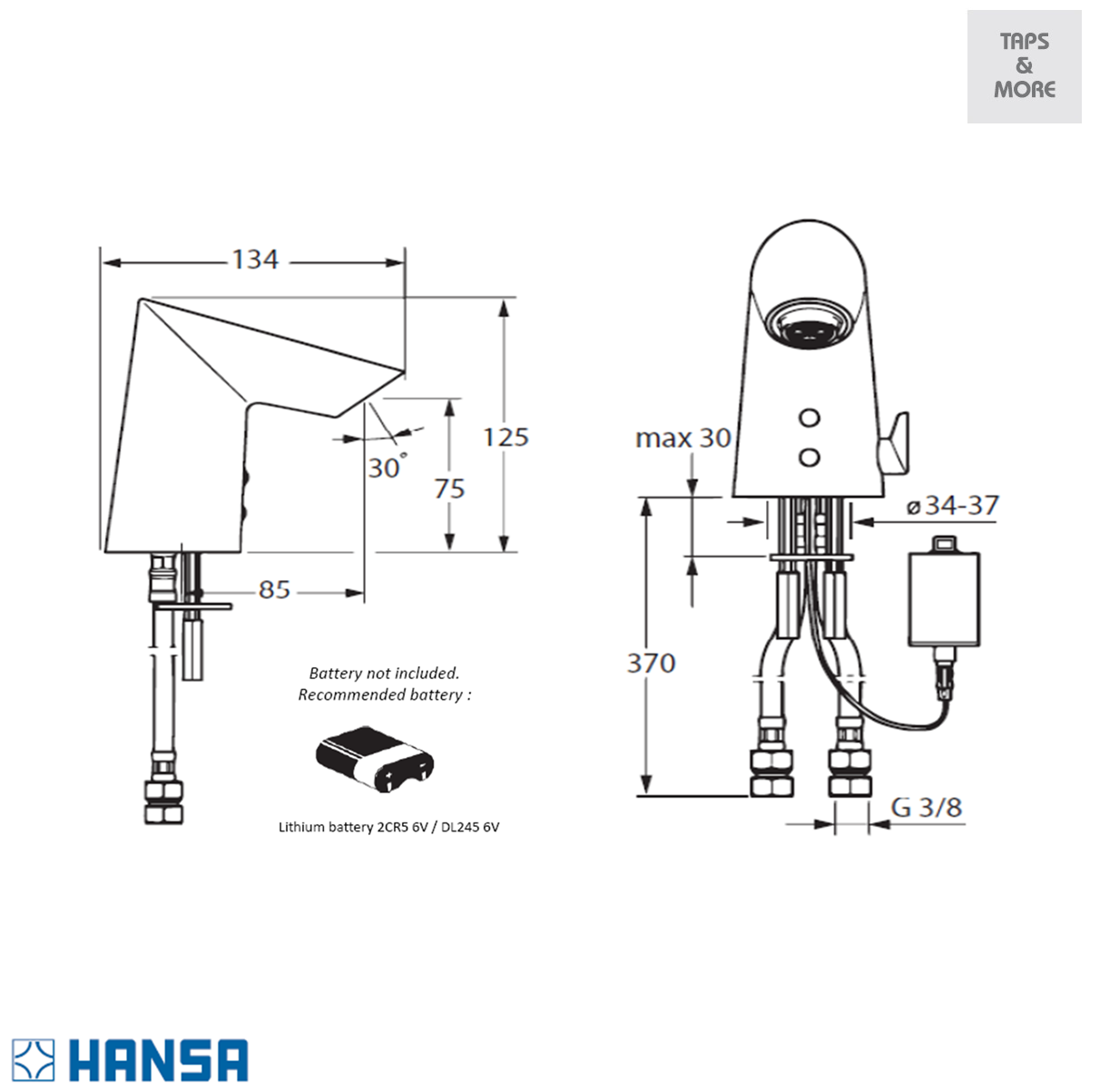 HANSA Electronic washbasin mixer, DN 15 battery-operated sensory operation (infrared)flow rate: 5 l/min, at 3 bar hydraulic pressure (Battey not included) – HANSAFIT