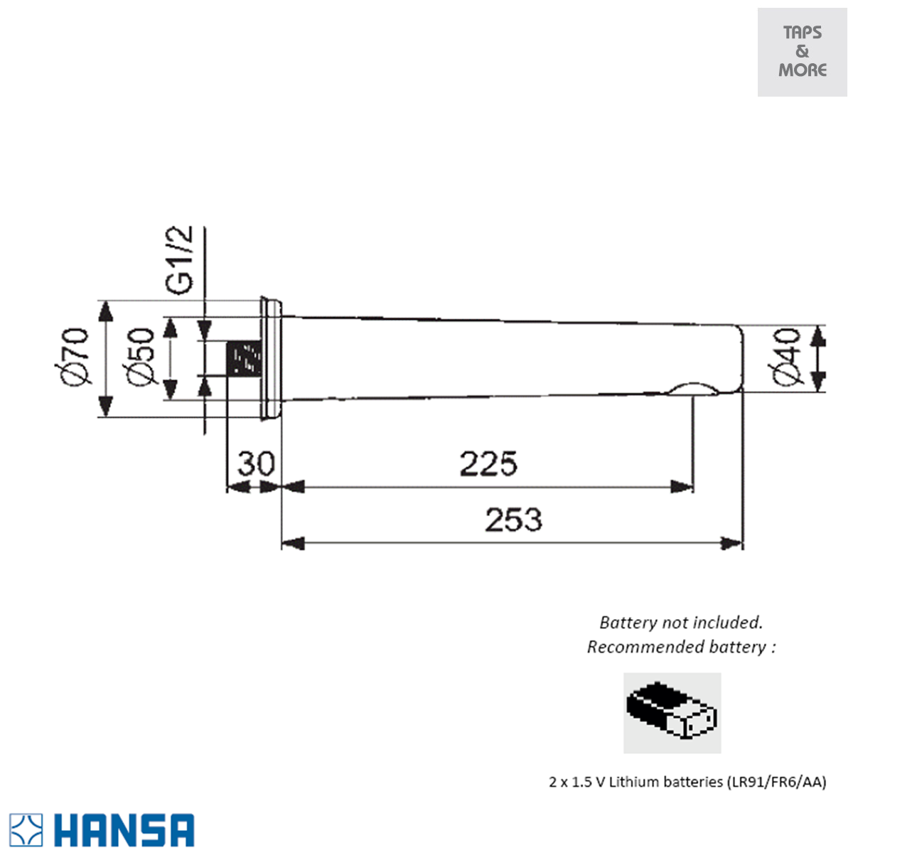 flow rate: 6 l/min, at 3 bar hydraulic pressure (Battey not included) – HANSAELECTRA