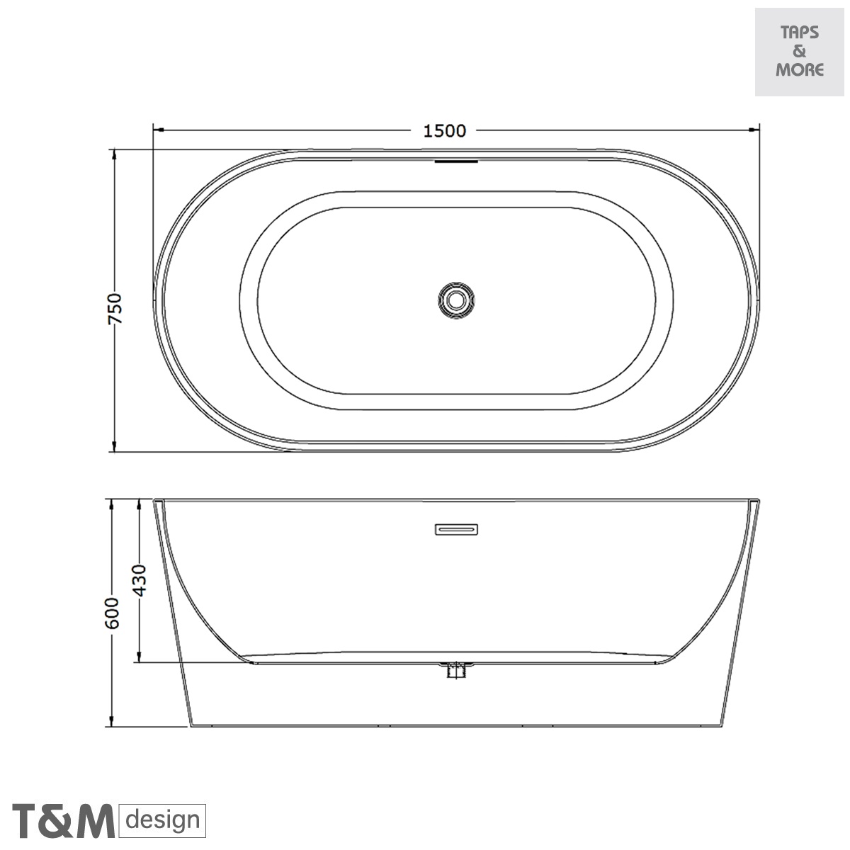 HomeBathtub, Whirlpool & Shower TraysFree standing bathtub T&M DESIGN Free standing bathtub with integrated surround panel, legsets and automatic bath waste & overflow set Size : 1500 x 750 x 590 mm – VANITY