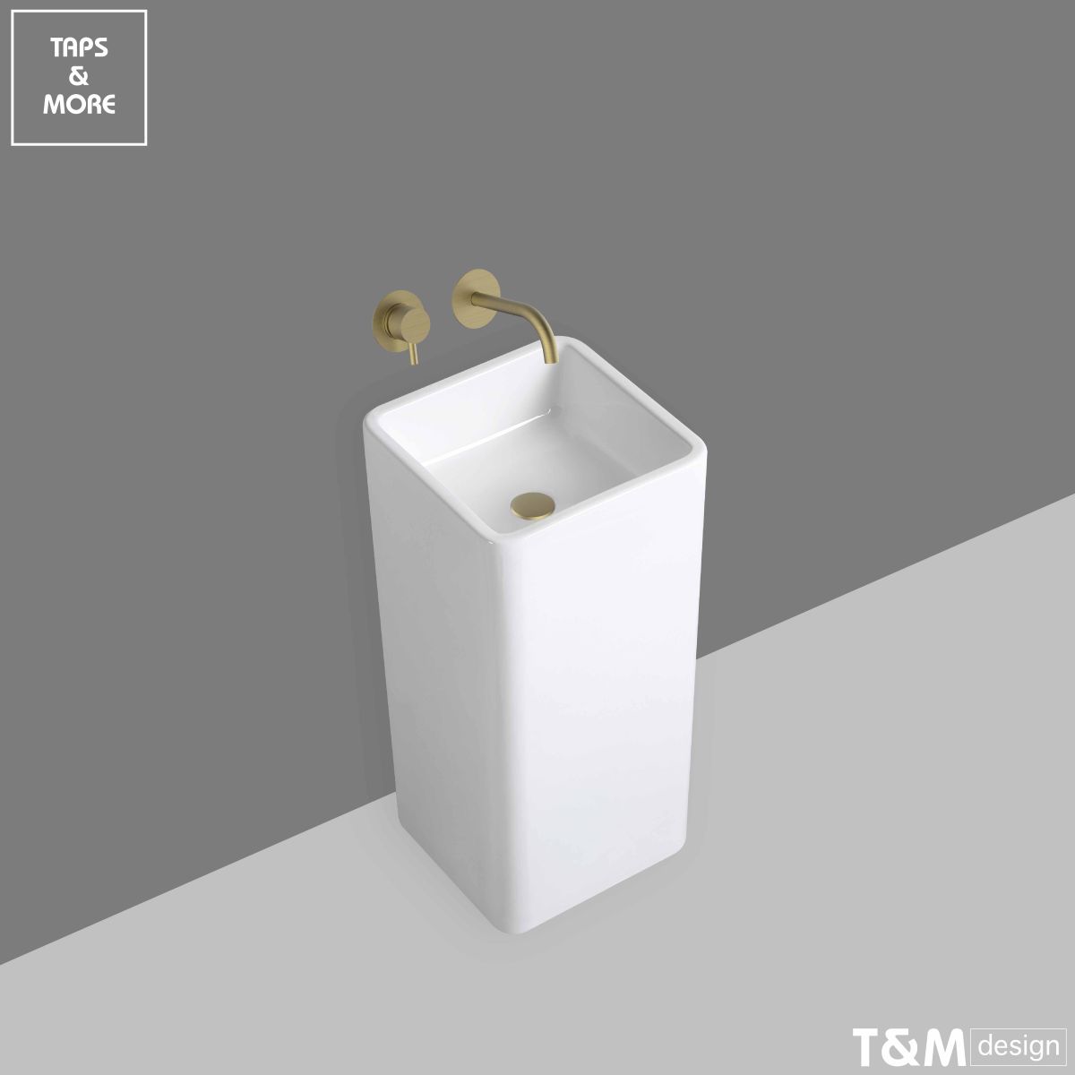 T&M DESIGN Freestanding ceramic washbasin wall outlet 400 x 400 x 850 mm with taphole, with overflow hole rear water supply, horizontal outlet - CUBE AED3,744.00 Original price was: AED3,744.00.AED2,620.80Current price is: AED2,620.80. Plus VAT
