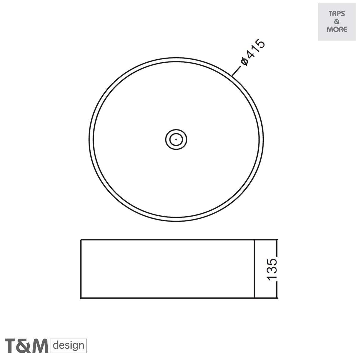 T&M DESIGN Lay-on washbasin without overflow hole Size : Ø 415 x H 135 mm – VOGUE