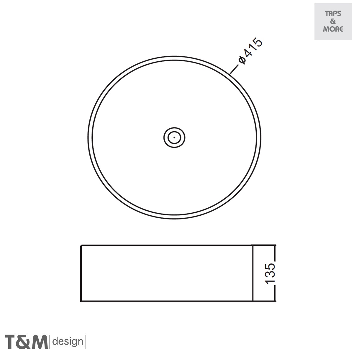 T&M DESIGN Lay-on washbasin without overflow hole Size : Ø 415 x H 135 mm – VOGUE