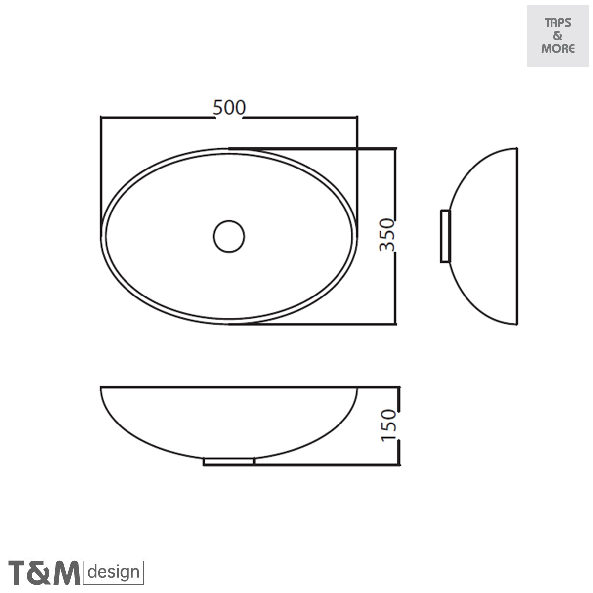 T&M DESIGN Lay-on washbasin without overflow hole Size : 500 x 350 x 150 mm – ADORE