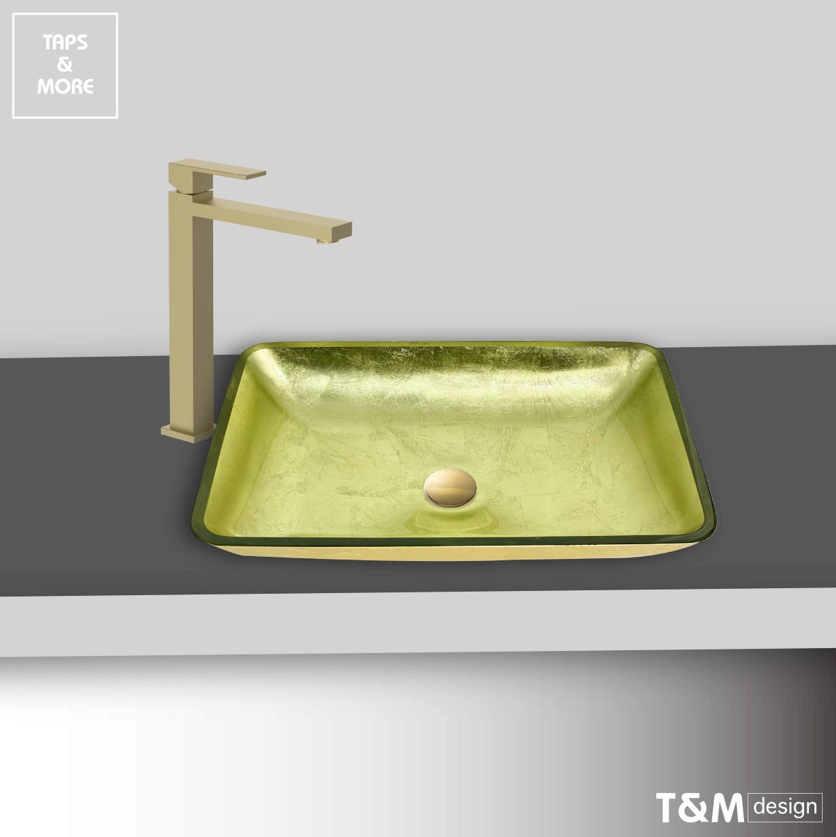T&M DESIGN Lay-on washbasin without overflow hole, 420 x 420 x 145 mm – GOLD