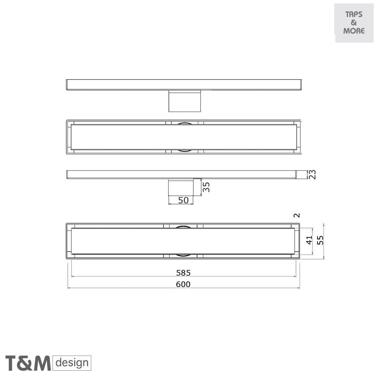 T&M DESIGN  Linear Floor Drain / Shower Channel - reversible & tileable, 600 x 55 mm, compatible with 50 mm drain pipe - Publik