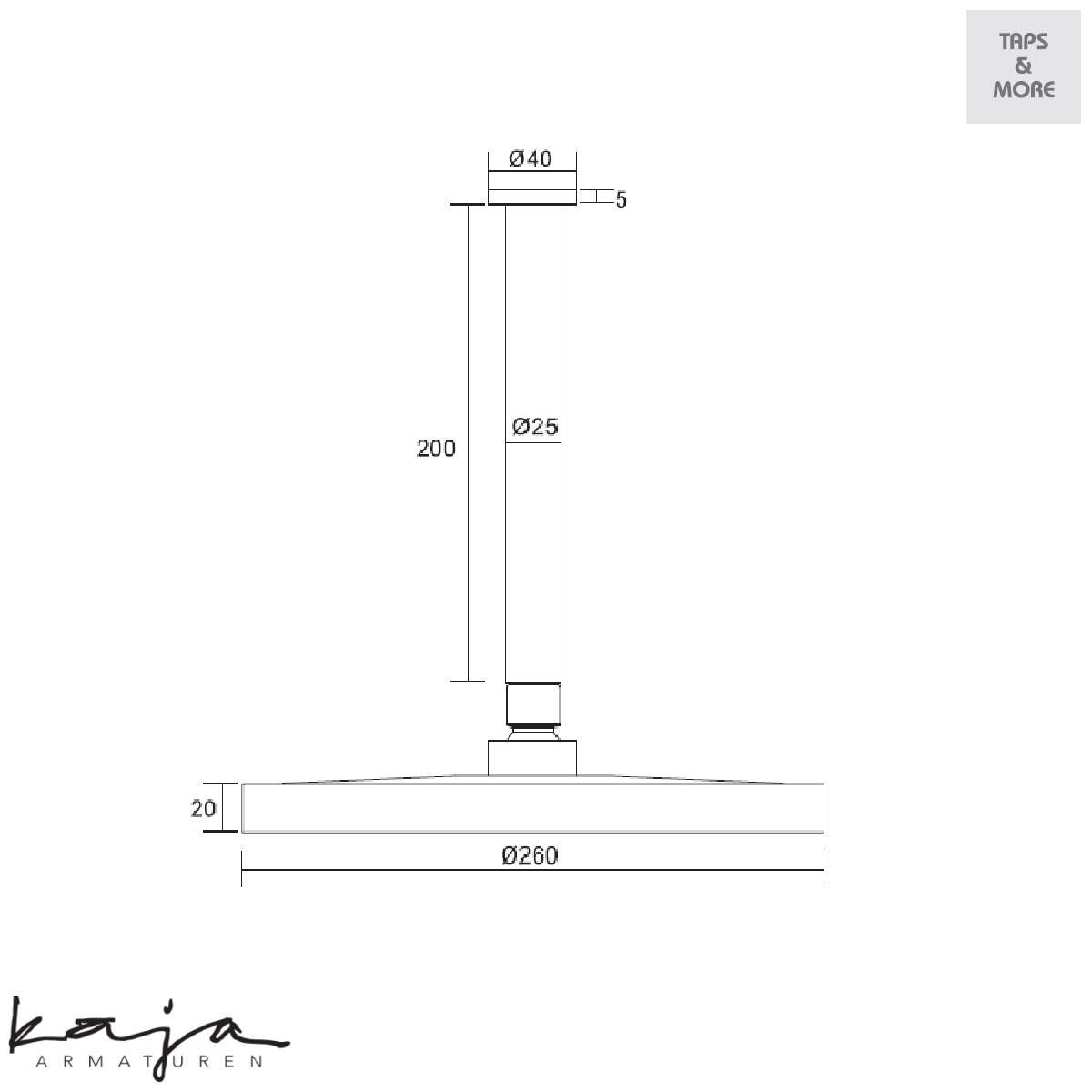 KAJA Rain Shower Head, ceiling mounted consisting of shower head MA5000SH with swivel joint 260 Ø mm with shower arm – MASTRER CEIL
