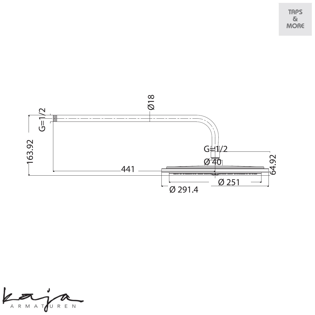 KAJA Rain Shower Head, ceiling mounted consisting of shower head TR5000SH with swivel joint 290 Ø mm with shower arm – TRENDY CIEL