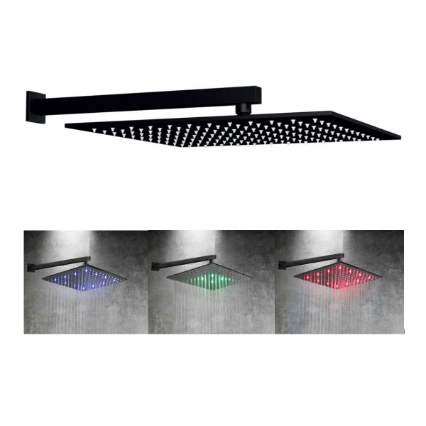 T&M DESIGN Rain Shower Head with 3-colour changing LED lights, ceiling installation consisting of: shower head SC4000LED with swivel joint 400 x 400 x 8 mm with shower arm – LED SYNCRO CIEL