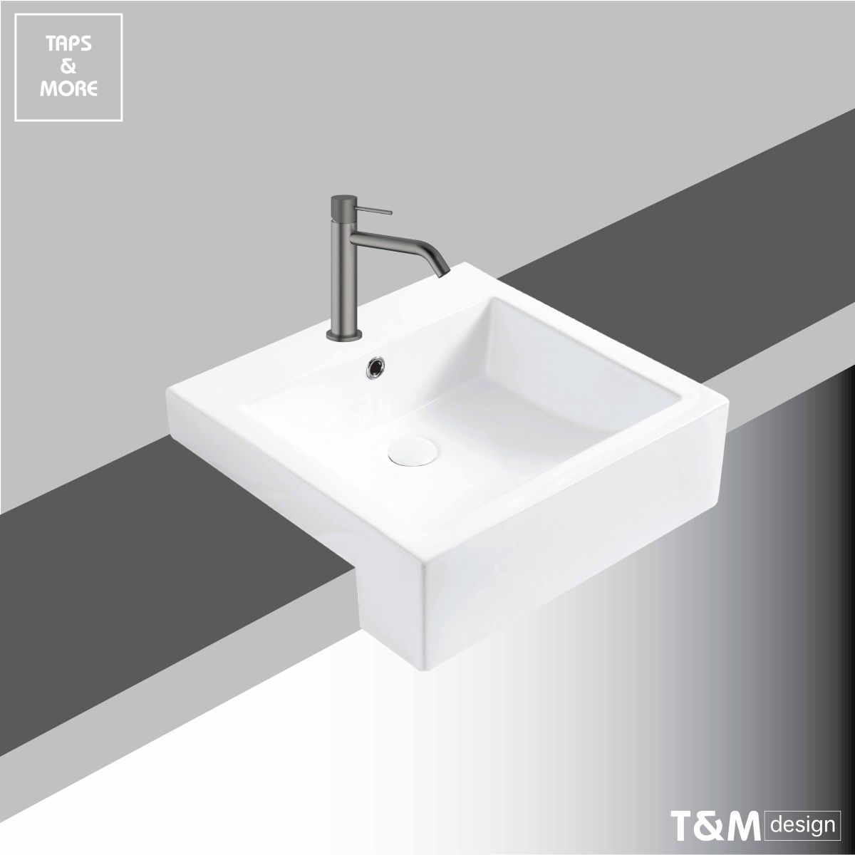 T&M DESIGN Semi-recessed washbasin with taphole, with overflow hole