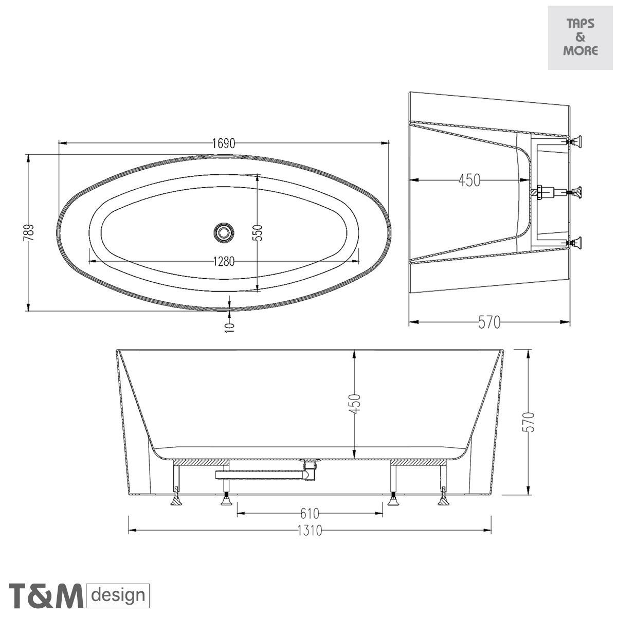 T&M DESIGN Free standing bathtub with integrated surround panel, leg sets and automatic bath waste & overflow set