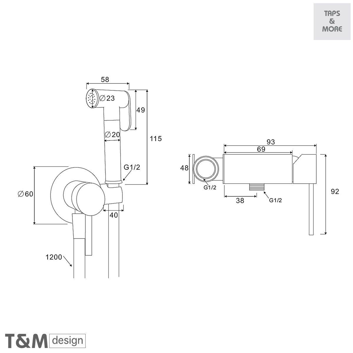 T&M DESIGN Round Shattaf / Bidet Spray Shower Set, soft white trigger