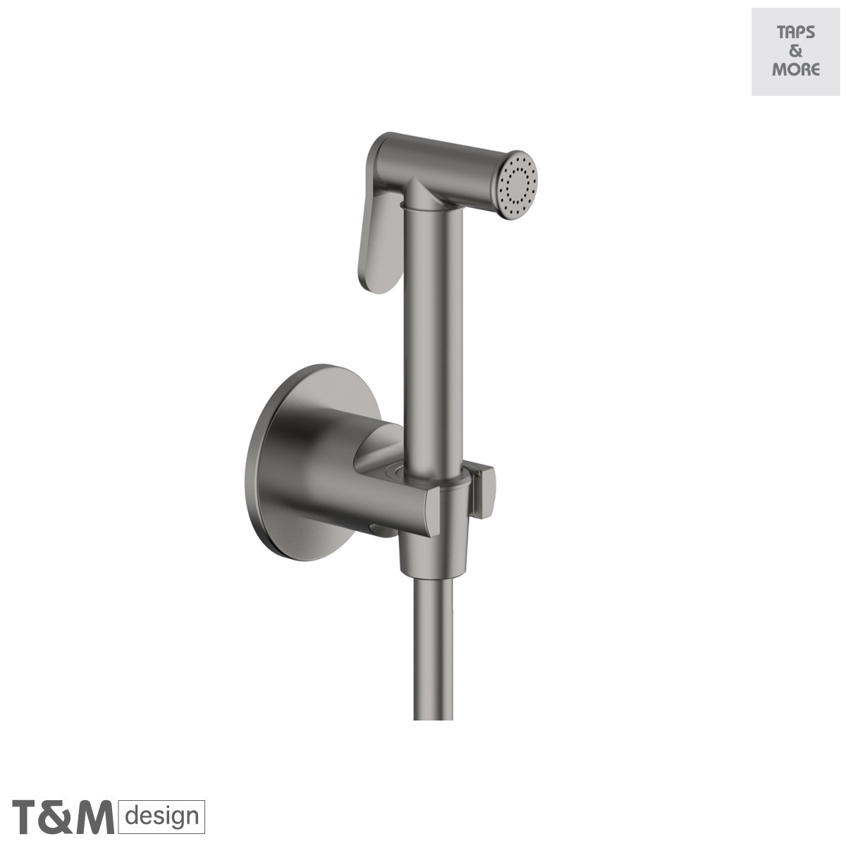 HomeShattaf / Bidet Spray CollectionShattaf / Bidet Spray Shower Set T&M DESIGN Round Shattaf / Bidet Spray Shattaf Shower Set, brushed nickel trigger• Twist free brushed nickel PVC flexible hose 120 cm• ½” swivel conical brushed nickel connection• Brushed nickel wall bracket – ART