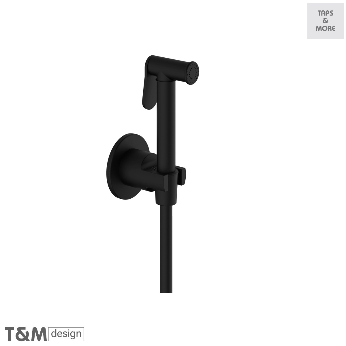 T&M DESIGN Round Shattaf / Bidet Spray Shattaf Shower Set, matt black trigger• Twist free matt black PVC flexible hose 120 cm• ½” swivel conical matt black connection• matt black wall bracket- ART