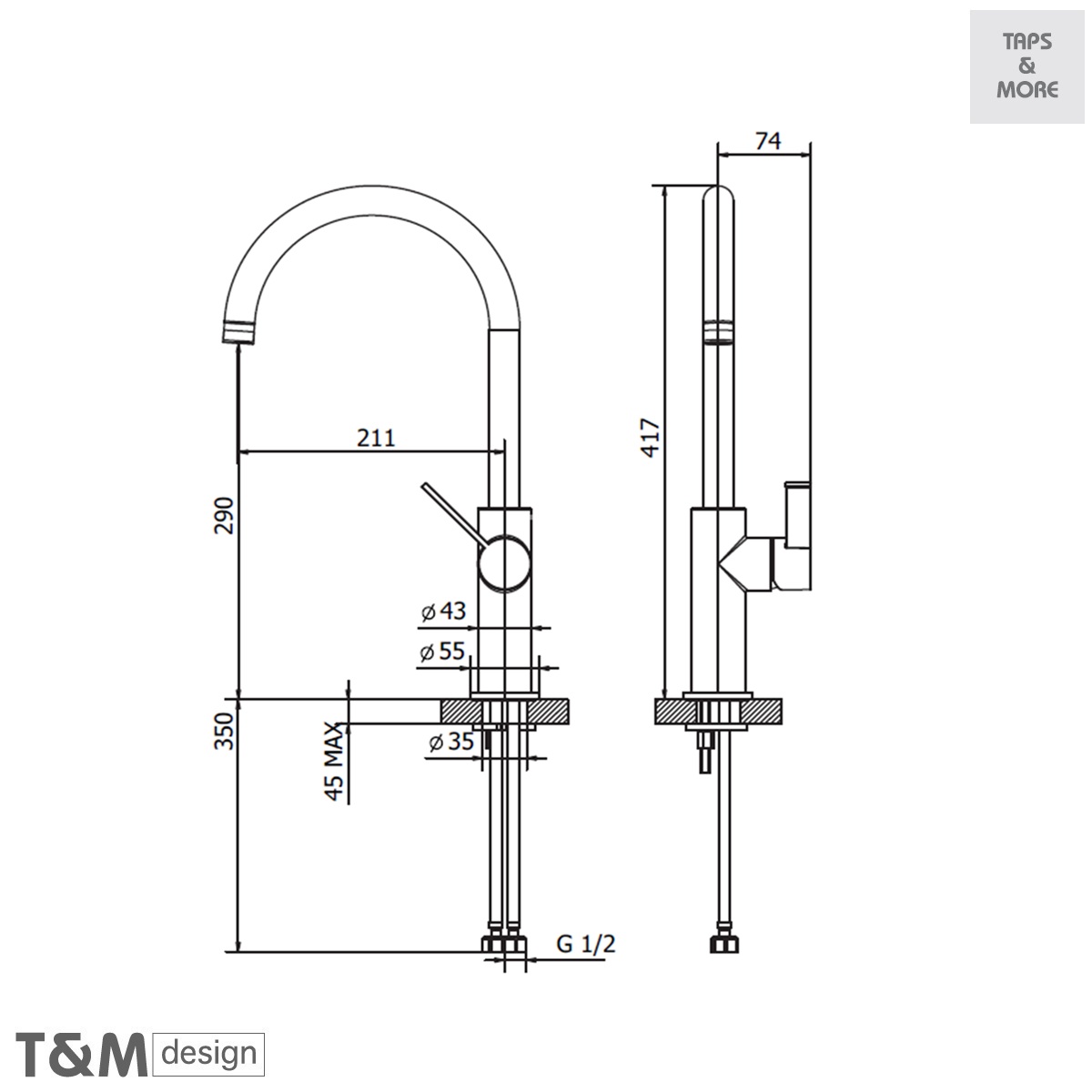 T&M DESIGN Single lever kitchen sink mixer with swivel high spout – Plan