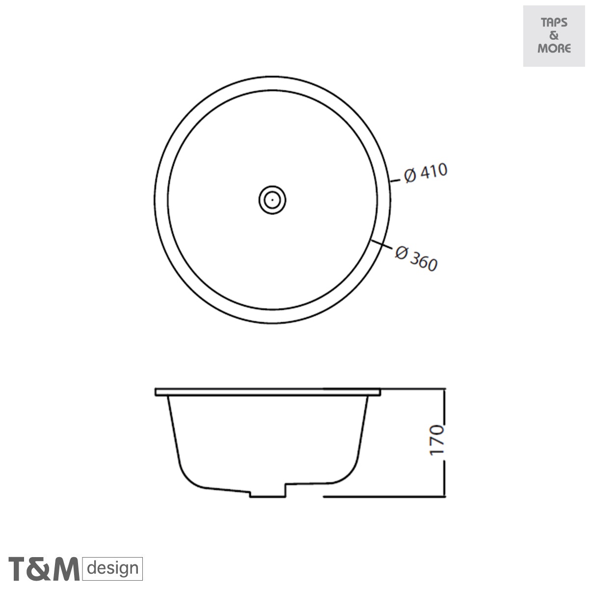 T&M DESIGN Undercounter washbasin Ø 410 x H 170 mm outside Ø 360 mm inside with overflow hole – RONDU