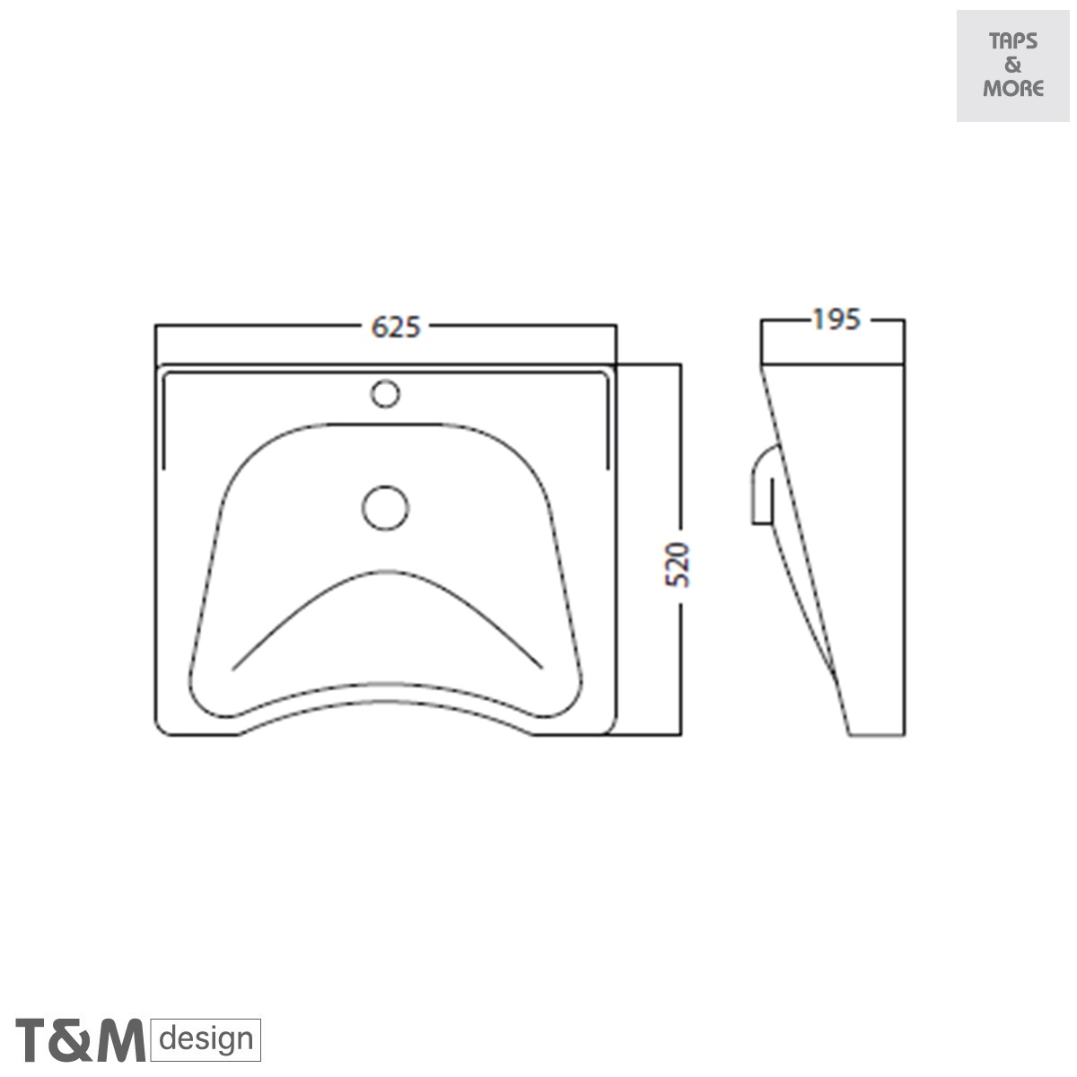 T&M DESIGN Wall mounted washbasin with taphole, with overflow hole Size : 625 x 520 x 195 mm – HELP