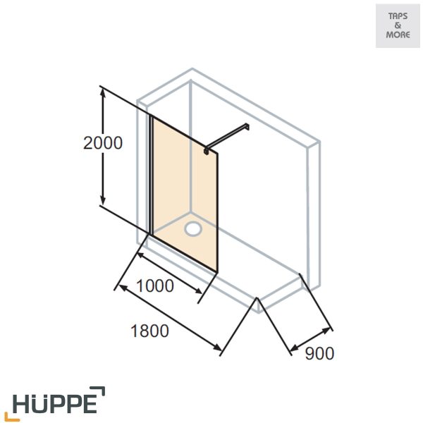 HomeShower Enclosure & Bath ScreenWalk-in + tray HUPPE Walk-in (main) 6 mm1000 x 2000 mm + acrylic rectangular shower tray 1800 x 900 mm & matching waste setClear Tempered – X1