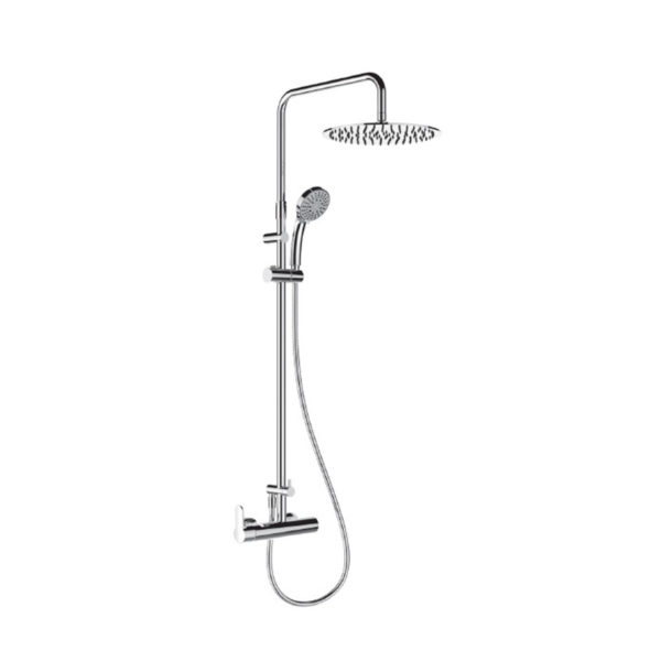 KAJA Shower Tower Set consisting of shower column with diverter, round steel shower head 300 Ø mm, round ABS 5-speed hand shower, CP shower hose 1500 mm, shower mixer w/ side lever – FRESH