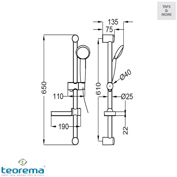 TEOREMA 4-Speed Shower Rail set consisting of: shower rail, hand shower, shower hose 150 cm, soap dish – Dyana